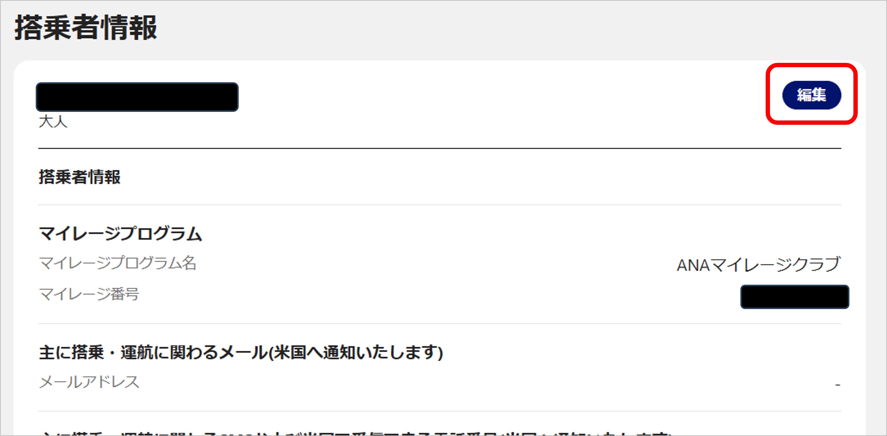 - 提携航空会社のマイレージ番号は、ANA国際線航空券予約確認より登録できます。