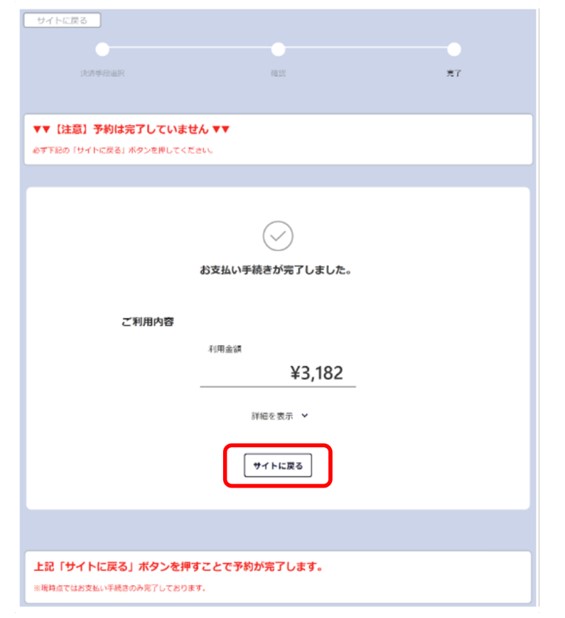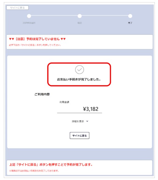 -手順-- 「お支払い手続きが完了しました」と画面に表示されることを確認する